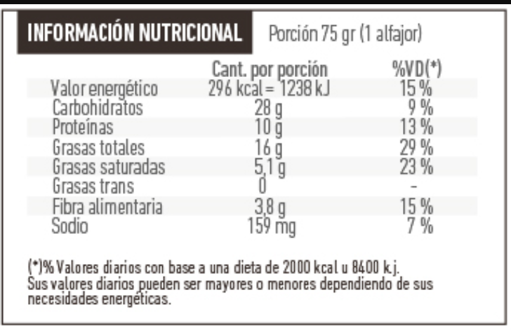 *(Almendras, porotos blancos, agua, aceite de coco, proteina de arveja, azúcar, jarabe de glucosa, sal, EST: agar-agar, ARO: dulce de leche).