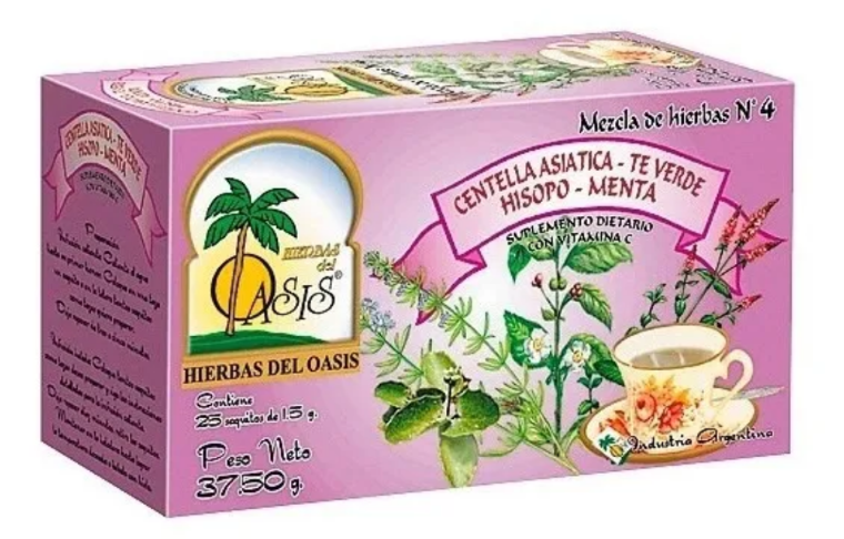 Centella asiática, te verde, hisopo y menta.