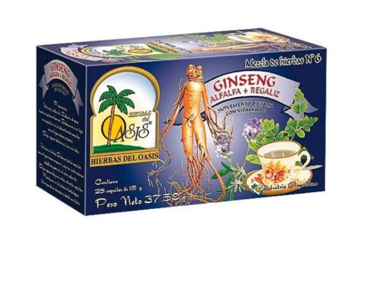 A base de Ginseng Raíz, Alfalfa, Regaliz y Vitamina C.