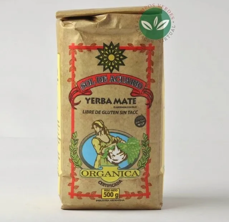 Sol de Acuario» fue la primera yerba orgánica certificada que se registró en Argentina, allá por 1991. Sabor muy balanceado con un toque fresco y ligeramente amargo muy personal. Tiene un sabor marcadamente diferente al promedio. Las yerbas orgánicas no tienen pesticidas, herbicidas o fungicidas.